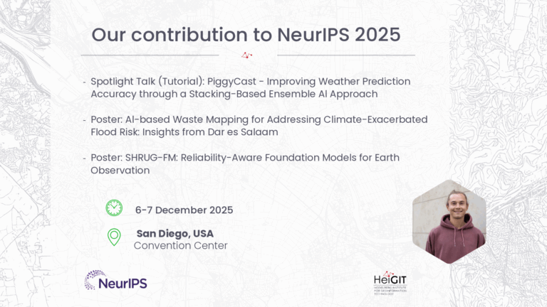 This year, our research team member Dr. Steffen Knoblauch will represent HeiGIT at the Climate Change AI (CCAI) Workshop of the NeurIPS 2025 Conference in San Diego.