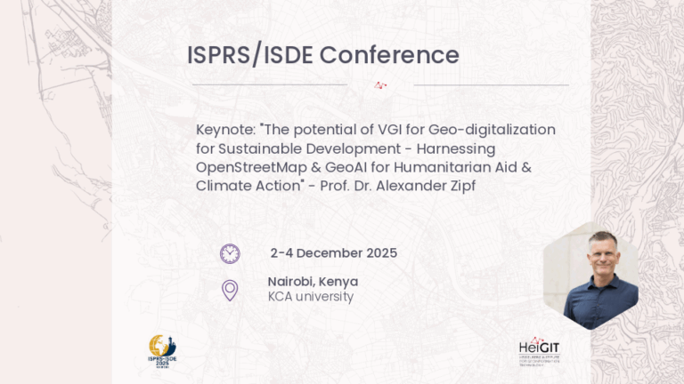 The conference programme contains talks, workshops, discussion rounds and more. Four talks as well as a workshop will be hosted by attending HeiGIT and GIScience team members.