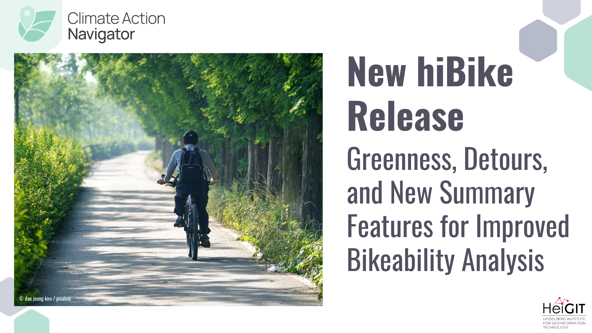 The current enhancements to hiBike are part of a broader development of the Climate Action Navigator, which already delivers high-resolution assessments on climate-relevant topics such as urban walkability, cities´ CO2 budgets, residential heating emissions, land consumption, and emissions linked to land use changes.
